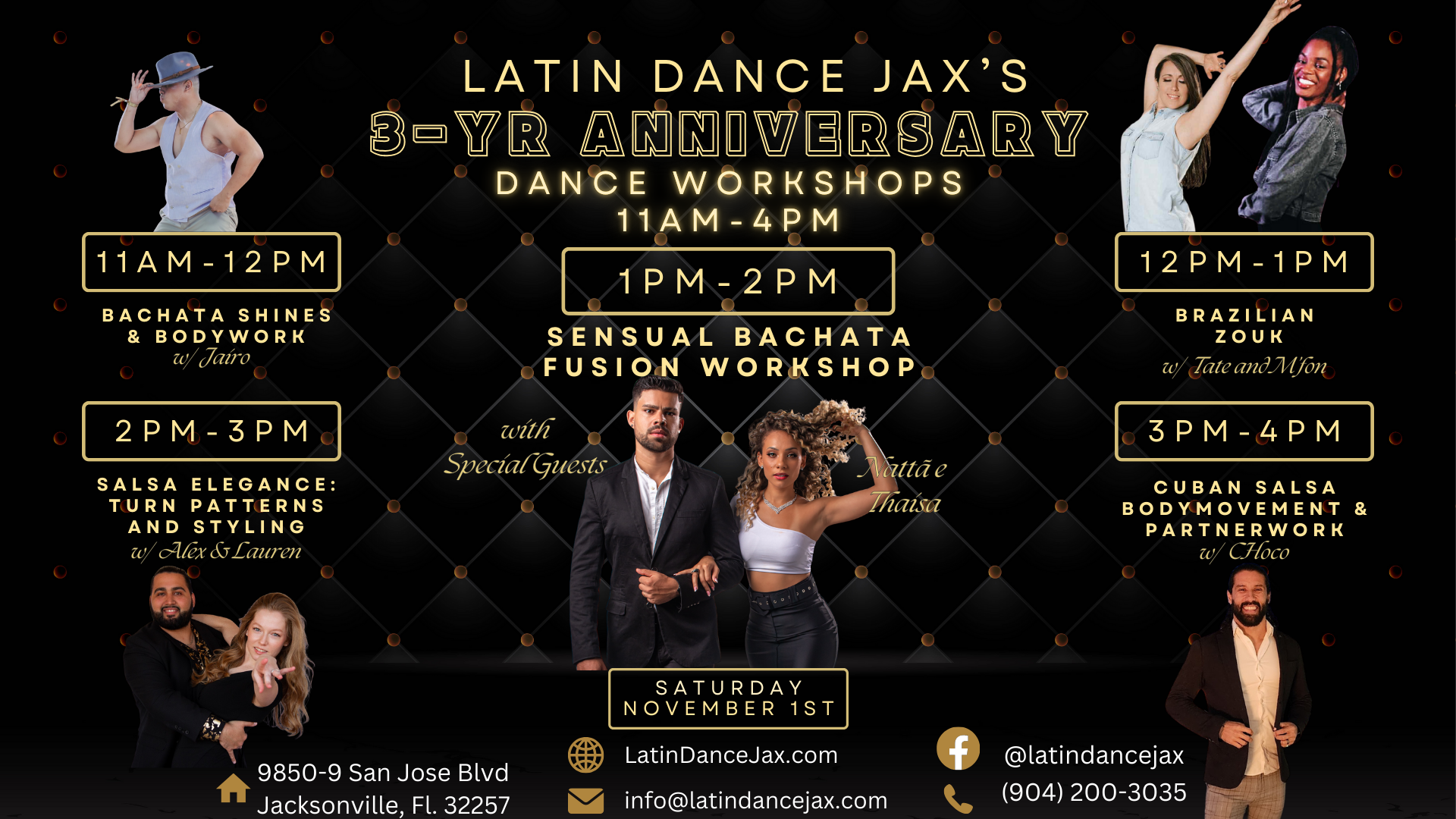 Location: Latin Dance Jax, located inside Monarch Ballroom. 9850-9 San Jose Blvd, Jacksonville, FL 32257