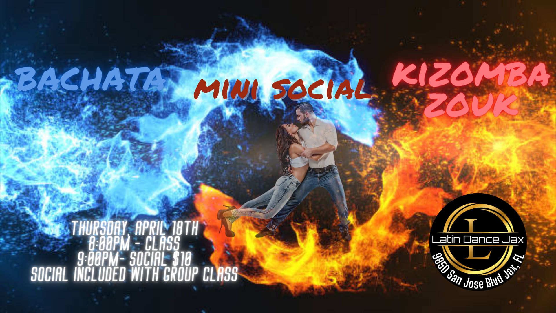 PRICE AT THE DOOR: -Free entry to the social if you attended the Beginner or Intermediate Bachata group class beforehand. ($15) -$10 for Mini Social only.